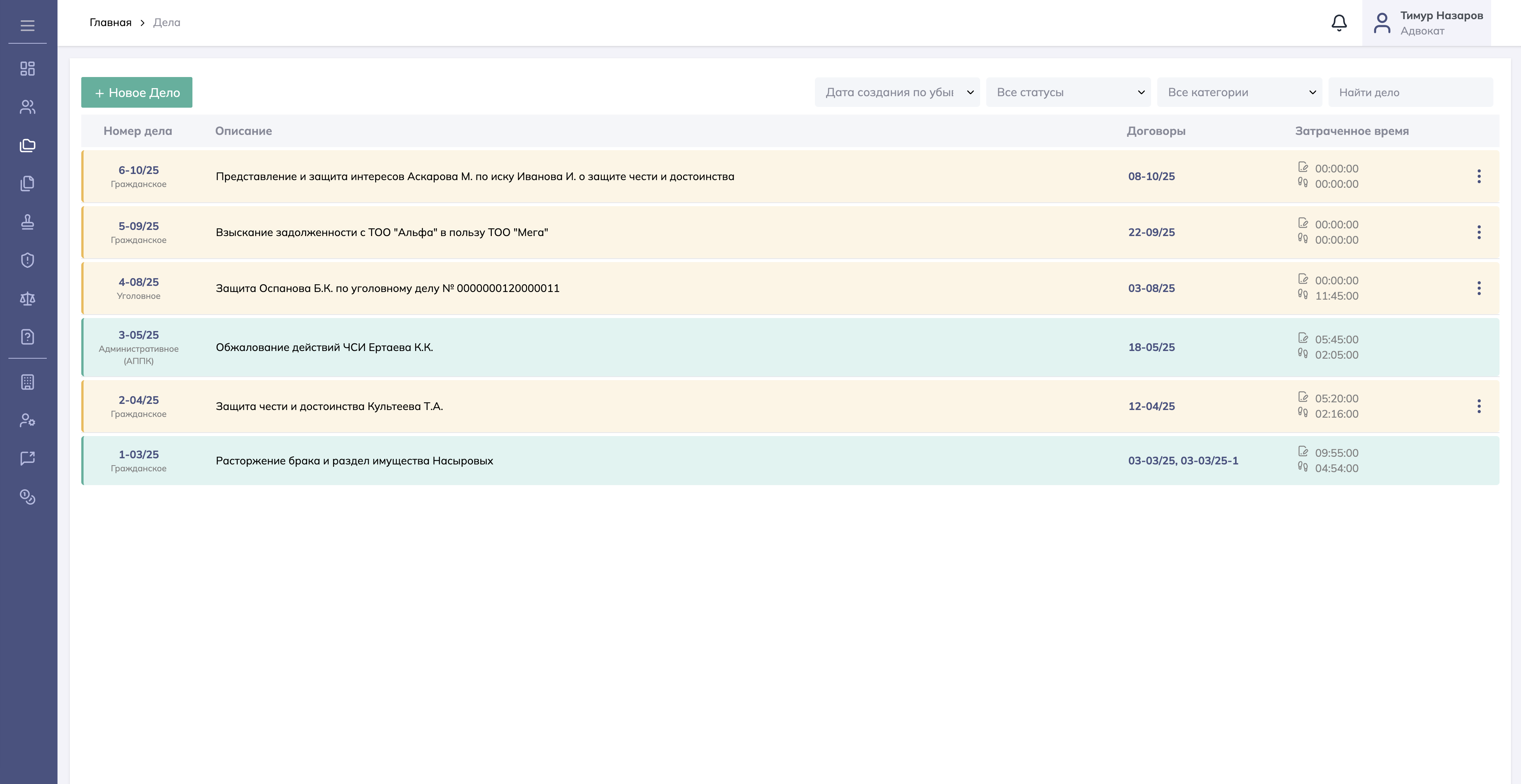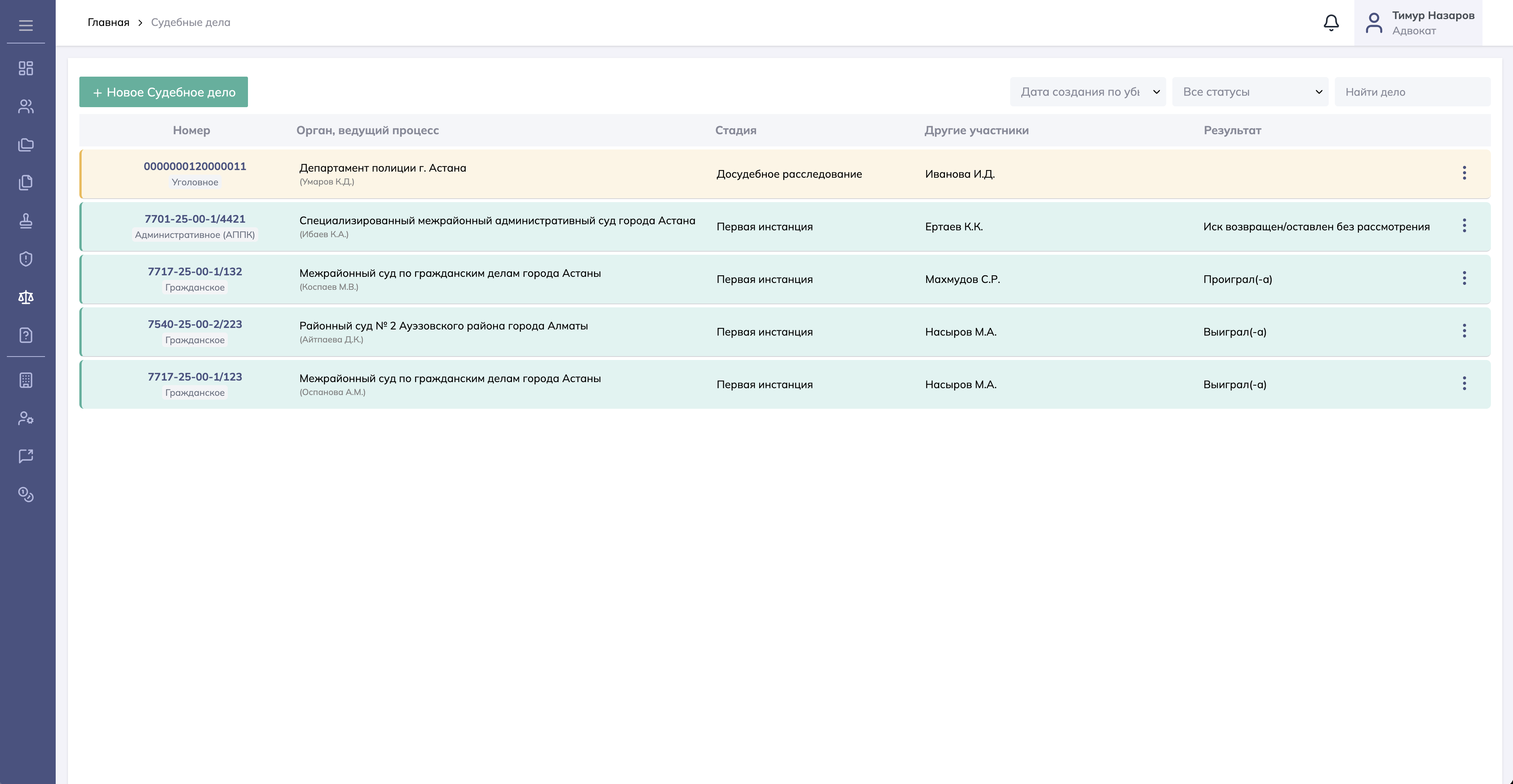 Сохраняйте и систематизируйте все свои судебные дела — гражданские, уголовные и иные — в единой базе. Отслеживайте статус, учитывайте время, контролируйте сроки на обжалование итоговых актов.